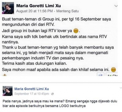 Berkat Limi dan tim, lambat laun RTV sudah muncul awareness-nya. Namun, kerja keras Limi dan tim selama 20 bulan sebelum rebranding tak akan dirasakan lagi “kenikmatannya”. Awal September 2015 lalu, perempuan ini mengundurkan diri sebagai CEO RTV. Banyak spekulasi yang beredar mengenai pengunduran dirinya. Ada spekulasi yang mengatakan, ia undur diri, karena dianggap tak mampu dibebankan target dalam hal pendapatan iklan di RTV. Spekulasi lainnya, Limi tak klop bersinergi dengan “seseorang” yang dianggapnya sombong dan seolah-olah paling tahu industri media, padahal baru masuk industri media 2-3 tahun. Setidaknya hal ini terlihat dari status di akun Facebook pribadinya.